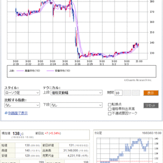 第三者割当増資のニュースで暴落して、4日間130円前後で攻防が続いていましたが、ついに売り買いが逆転。