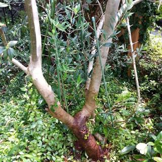 庭のオリーブの葉が落ちてきて、枯れかけたようになったので調べてみたら、ゾウムシにやられたようで、幹が穴だらけに!