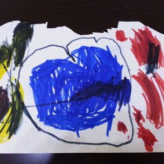 上の絵を見た娘が、自分も船に乗せてくれと言ったら描いた絵。